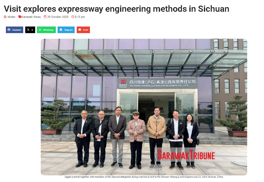 SICHUAN, China: A Sarawak delegation led by Deputy Premier Datuk Amar Douglas Uggah Embas completed a technical study visit to the Yakang Expressway in Sichuan, China, to explore engineering methods that could support future road development in the state’s challenging terrain.